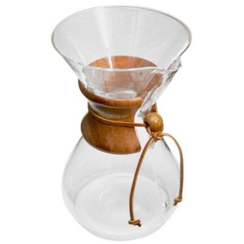 The brewer itself couldn't be simpler. A glass carafe with a cone-shaped top and comfortable leather-tied wooden collar. Chemex's elegant design has won it a permanent spot in the collections of the Museum of Modern Art, the Smithsonian and the Philadelphia Museum of Art. It makes it a beautiful serving vessel as well as a brilliant brewer.