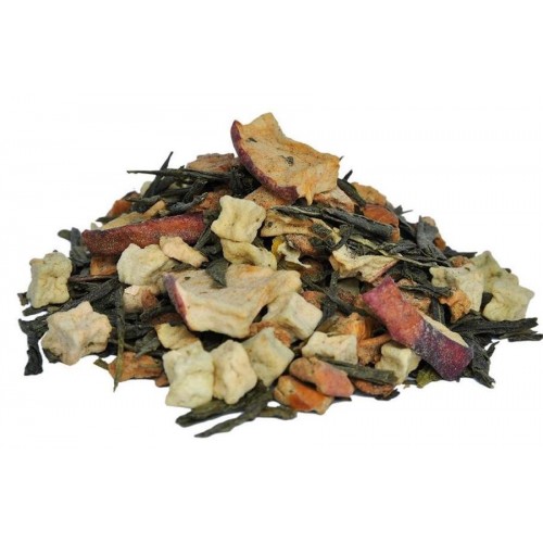 Outstanding green tea with sweet summer flavours of fresh apples and Quince. Like grandmas home made jam - without the sugar. Ingredients: Green tea, apple chunks, quince, blackberry leaves, natural flavour.